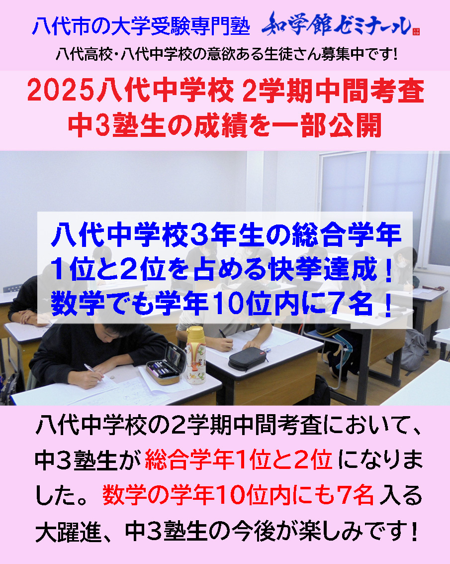 八代中学校の中3生は、既に学校で高校内容の数学に入っています。