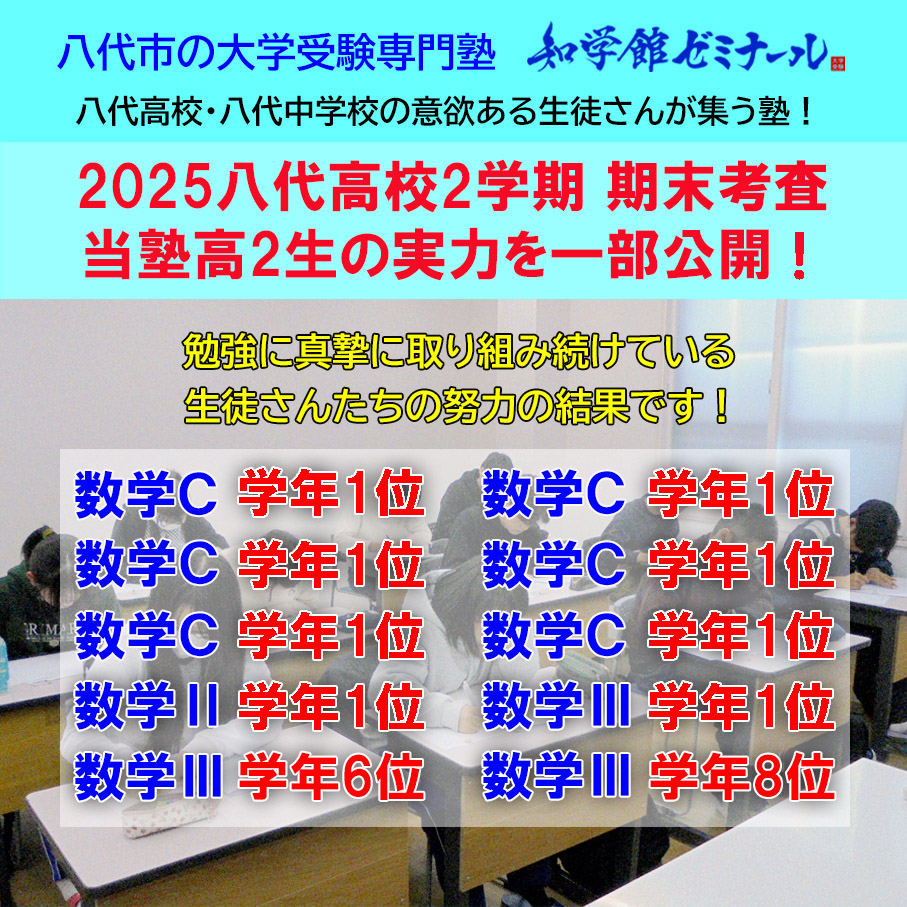 遅くなりましたが、11月に実施された八代高校2学期期末考査における高2塾生の結果を一部公開します。