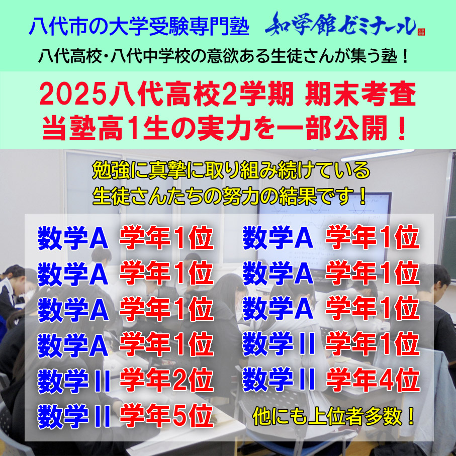 遅くなりましたが、11月に実施された八代高校2学期期末考査における高1塾生の結果を一部公開します。