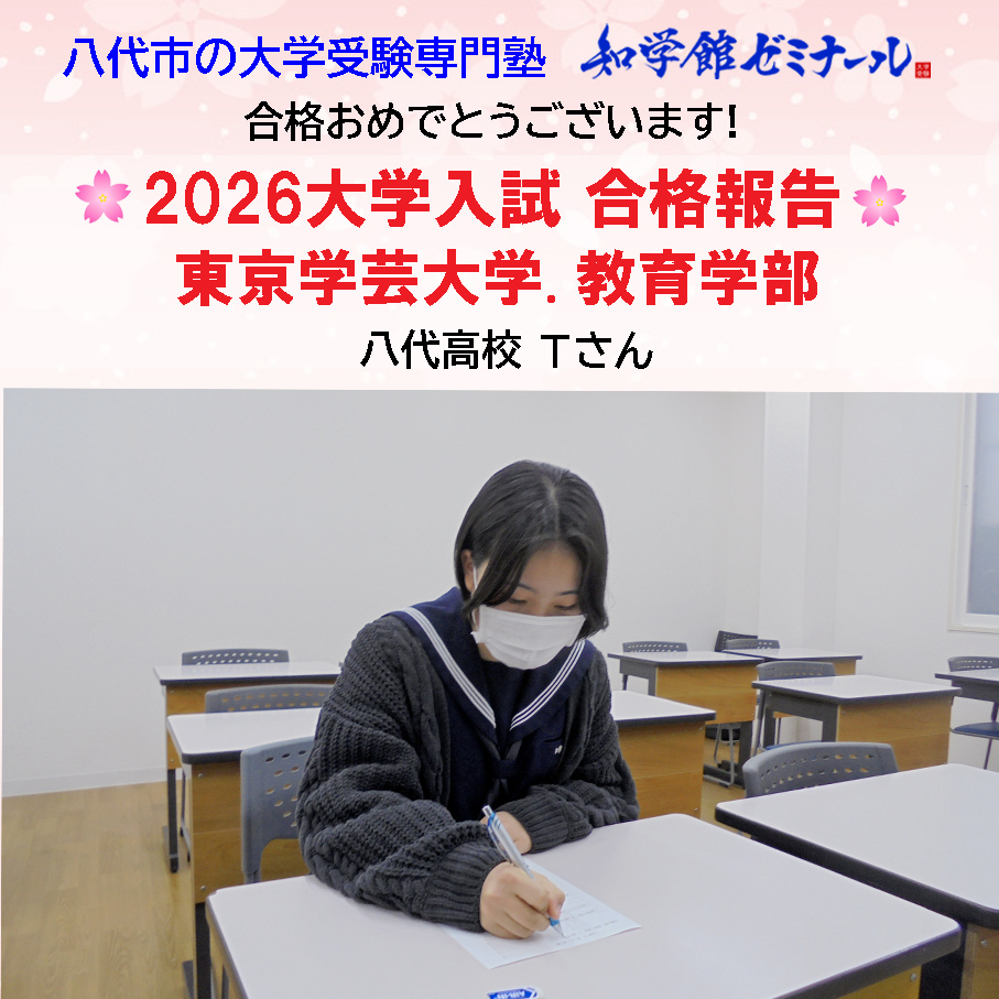 当塾卒塾生のTさん(2026八代高校卒業生)が、東京学芸大学の教育学部に合格しました。