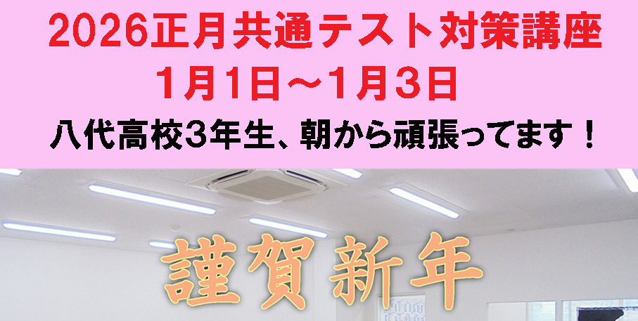 ※ 2024.11.28 定員に達したため、申込受付を終了しました。毎年大好評の「正月共通テスト対策講座」を、今年度も実施します。この講座は、生徒さん達に正月にも気を緩めることなく勉強してもらうために開塾時から実施していて、今年で12回目になります。1...